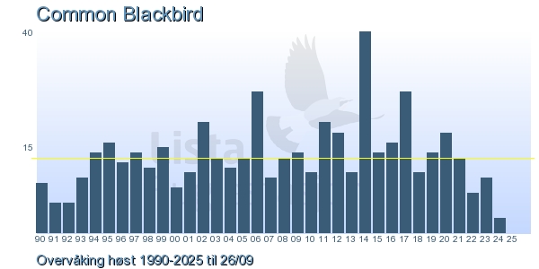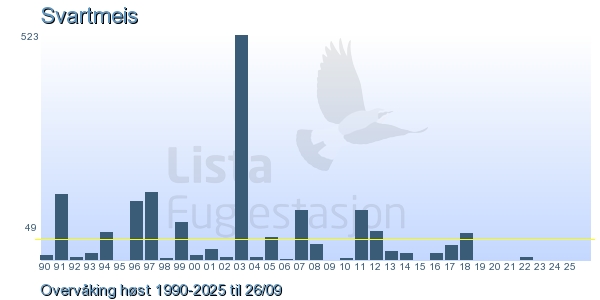 Her ser du resultater av merkeaktiviteten på Lista Fuglestasjon. Du kan velge om du vil ha Dagstall (detaljerte merketall for hver dag), Månedslister (totalsum hver dag for en måned), Sesongdata (status for sesongen), Årslister (artsoversikt for et år) eller Artsliste Lista fuglestasjon (Hele artslisten for merkede fugler på Lista Fuglestasjon).