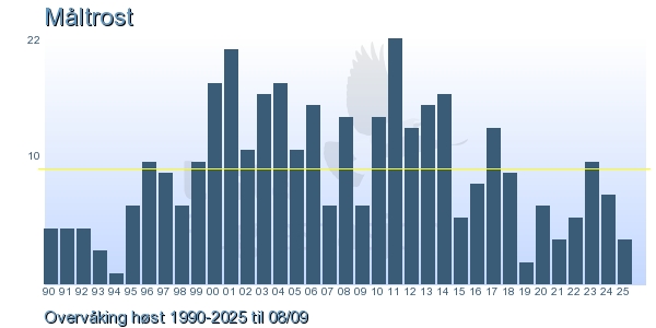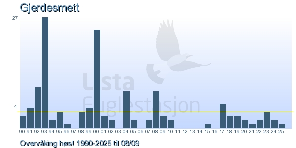 Her ser du resultater av merkeaktiviteten på Lista Fuglestasjon. Du kan velge om du vil ha Dagstall (detaljerte merketall for hver dag), Månedslister (totalsum hver dag for en måned), Sesongdata (status for sesongen), Årslister (artsoversikt for et år) eller Artsliste Lista fuglestasjon (Hele artslisten for merkede fugler på Lista Fuglestasjon).
