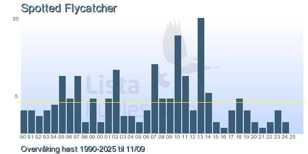 | 3 | Gråfluesnapper | Spotted Flycatcher | Muscicapa striata | 1 |