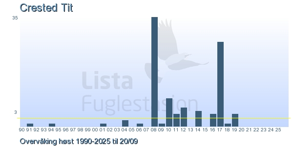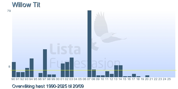 Her ser du resultater av merkeaktiviteten på Lista Fuglestasjon. Du kan velge om du vil ha Dagstall (detaljerte merketall for hver dag), Månedslister (totalsum hver dag for en måned), Sesongdata (status for sesongen), Årslister (artsoversikt for et år) eller Artsliste Lista fuglestasjon (Hele artslisten for merkede fugler på Lista Fuglestasjon).