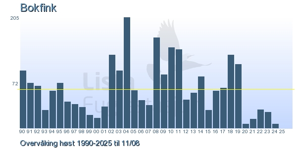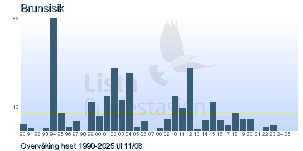 These pages contains the ringing log from Lista Bird Obs. There are several options; Daily log (detailed ringing log for any chosen day), Month log (totals for each day in a month), Season numbers (status for this season), Year list (list of species ringed for any chosen year) or Birdlist Lista Bird Obs. (complete list of species ringed).