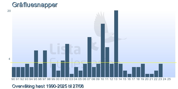 | 5 | Gråfluesnapper | Spotted Flycatcher | Muscicapa striata | 1 |