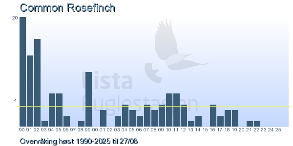 | 13 | Rosenfink | Common Rosefinch | Carpodacus erythrinus | 1 |