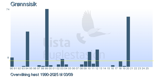 | 4 | Grønnsisik | Eurasian Siskin | Spinus spinus | 1 |