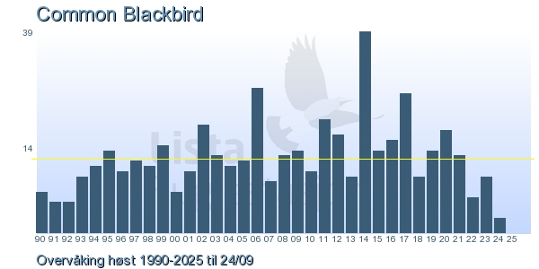 | 5 | Svarttrost | Common Blackbird | Turdus merula | 1 |