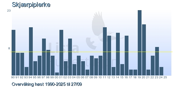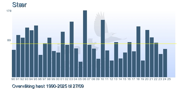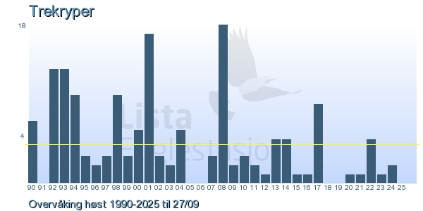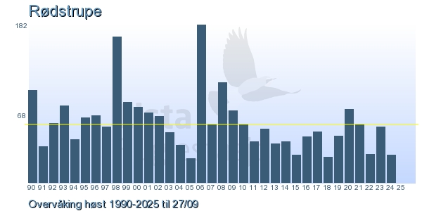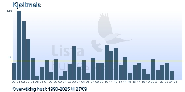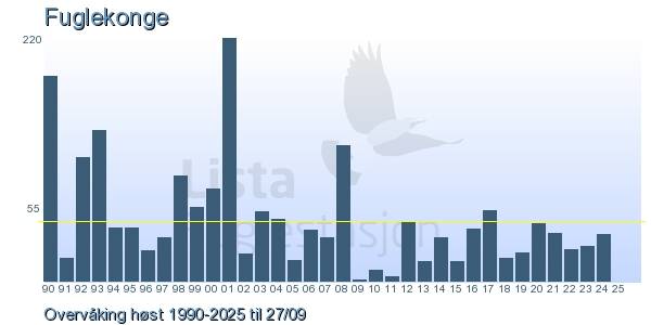 Her ser du resultater av merkeaktiviteten på Lista Fuglestasjon. Du kan velge om du vil ha Dagstall (detaljerte merketall for hver dag), Månedslister (totalsum hver dag for en måned), Sesongdata (status for sesongen), Årslister (artsoversikt for et år) eller Artsliste Lista fuglestasjon (Hele artslisten for merkede fugler på Lista Fuglestasjon).