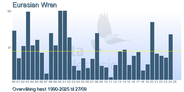 | 7 | Gjerdesmett | Eurasian Wren | Troglodytes troglodytes | 3 |