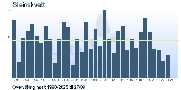 | 13 | Steinskvett | Northern Wheatear | Oenanthe oenanthe | 2 |