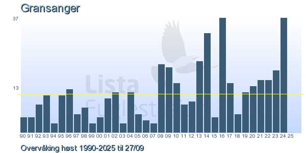 | 4 | Gransanger | Chiffchaff | Phylloscopus collybita | 2 |