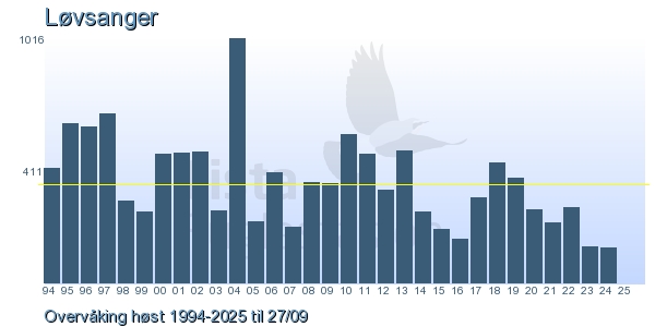 | 3 | Løvsanger | Willow Warbler | Phylloscopus trochilus | 1 |