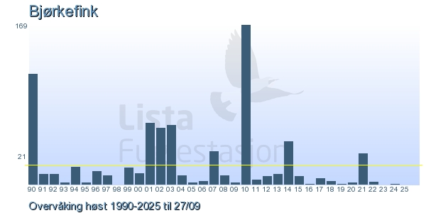 | 19 | Bjørkefink | Brambling | Fringilla montifringilla | 3 |