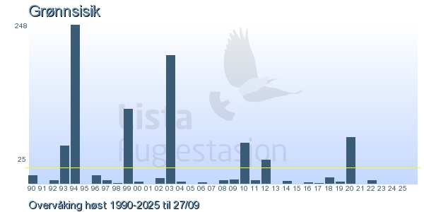 | 21 | Grønnsisik | Eurasian Siskin | Spinus spinus | 1 |