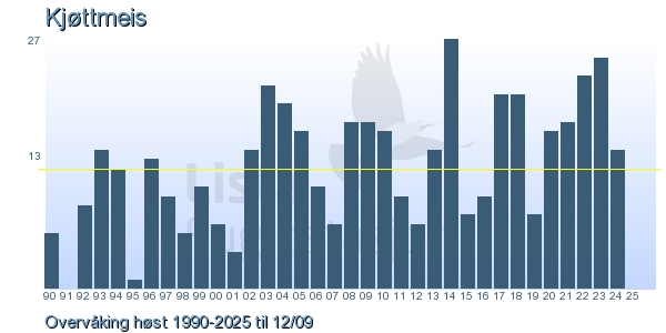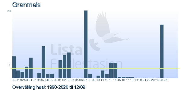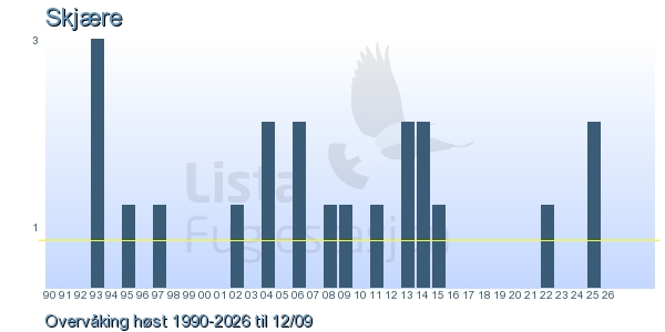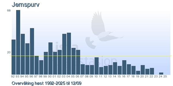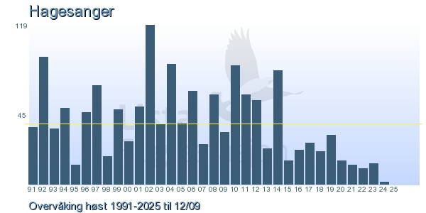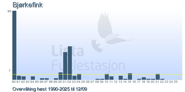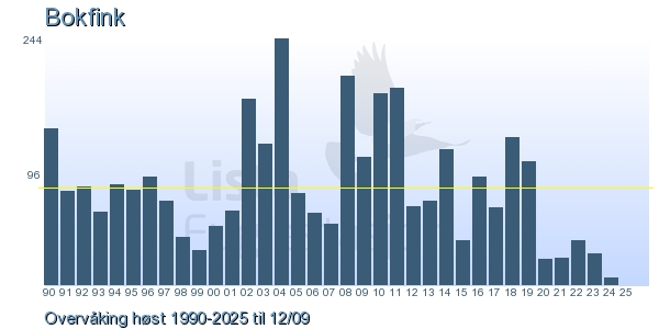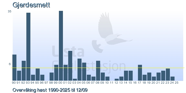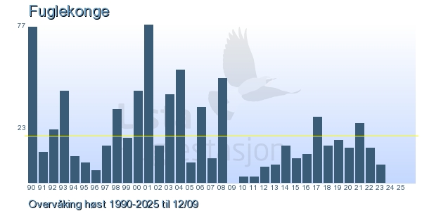 Her ser du resultater av merkeaktiviteten på Lista Fuglestasjon. Du kan velge om du vil ha Dagstall (detaljerte merketall for hver dag), Månedslister (totalsum hver dag for en måned), Sesongdata (status for sesongen), Årslister (artsoversikt for et år) eller Artsliste Lista fuglestasjon (Hele artslisten for merkede fugler på Lista Fuglestasjon).