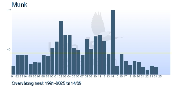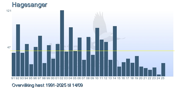 Her ser du resultater av merkeaktiviteten på Lista Fuglestasjon. Du kan velge om du vil ha Dagstall (detaljerte merketall for hver dag), Månedslister (totalsum hver dag for en måned), Sesongdata (status for sesongen), Årslister (artsoversikt for et år) eller Artsliste Lista fuglestasjon (Hele artslisten for merkede fugler på Lista Fuglestasjon).