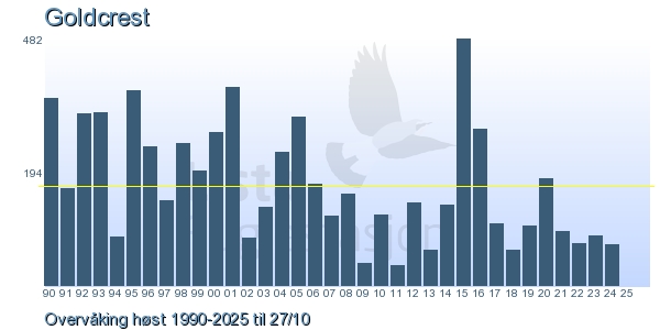 | 5 | Fuglekonge | Goldcrest | Regulus regulus | 4 |