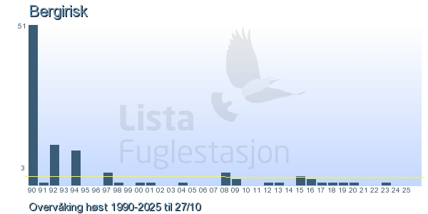 | 10 | Bergirisk | Twite | Linaria flavirostris | 1 |