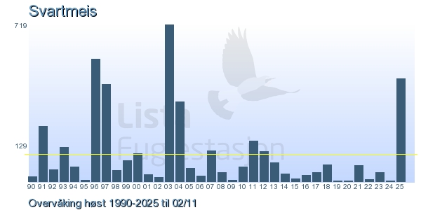 Her ser du resultater av merkeaktiviteten på Lista Fuglestasjon. Du kan velge om du vil ha Dagstall (detaljerte merketall for hver dag), Månedslister (totalsum hver dag for en måned), Sesongdata (status for sesongen), Årslister (artsoversikt for et år) eller Artsliste Lista fuglestasjon (Hele artslisten for merkede fugler på Lista Fuglestasjon).