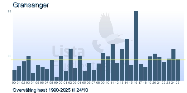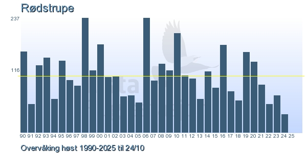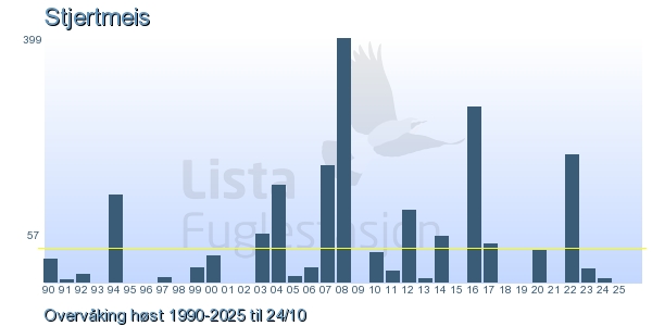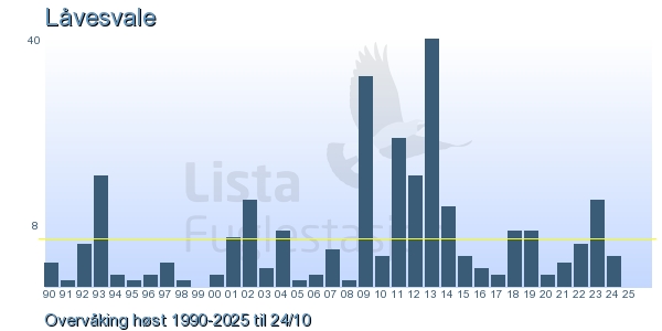 These pages contains the ringing log from Lista Bird Obs. There are several options; Daily log (detailed ringing log for any chosen day), Month log (totals for each day in a month), Season numbers (status for this season), Year list (list of species ringed for any chosen year) or Birdlist Lista Bird Obs. (complete list of species ringed).