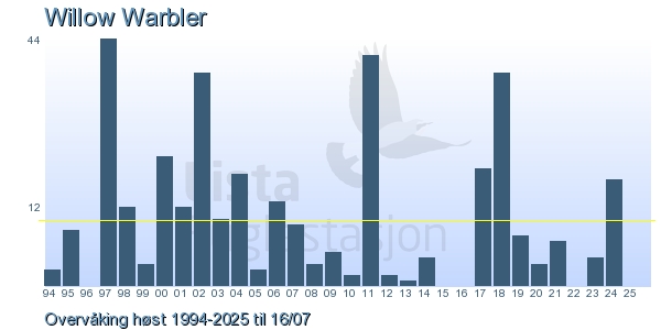 | 2 | Løvsanger | Willow Warbler | Phylloscopus trochilus | 8 |