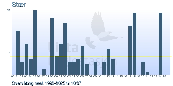 | 7 | Stær | Common Starling | Sturnus vulgaris | 1 |