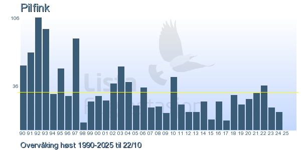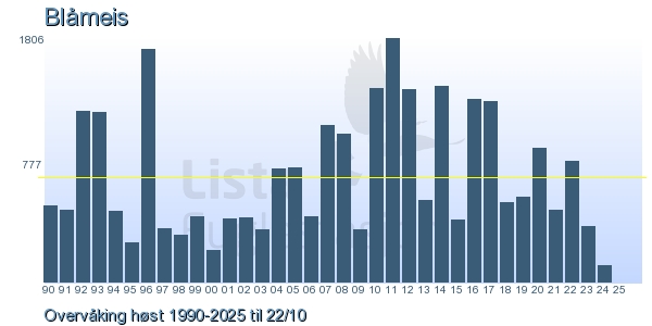 Her ser du resultater av merkeaktiviteten på Lista Fuglestasjon. Du kan velge om du vil ha Dagstall (detaljerte merketall for hver dag), Månedslister (totalsum hver dag for en måned), Sesongdata (status for sesongen), Årslister (artsoversikt for et år) eller Artsliste Lista fuglestasjon (Hele artslisten for merkede fugler på Lista Fuglestasjon).
