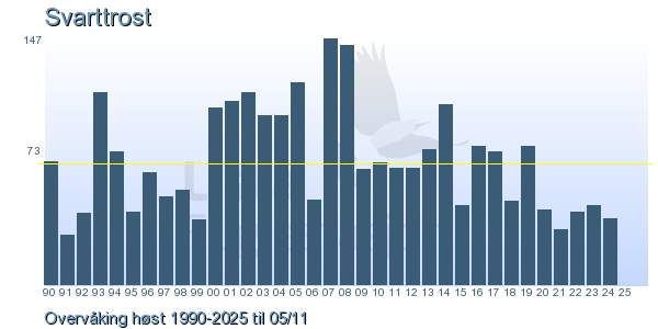 | 5 | Svarttrost | Common Blackbird | Turdus merula | 5 |