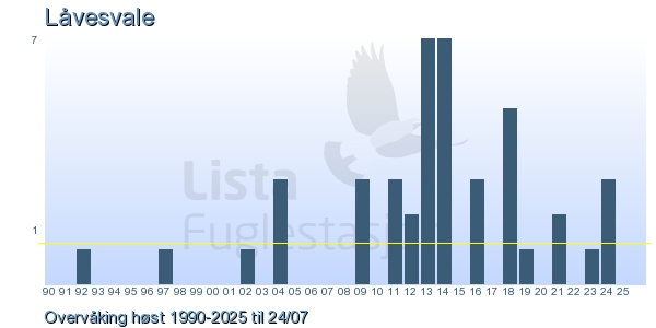 | 3 | Låvesvale | Barn Swallow | Hirundo rustica | 1 |