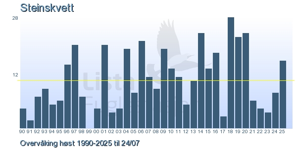 | 12 | Steinskvett | Northern Wheatear | Oenanthe oenanthe | 2 |