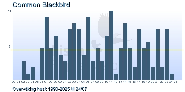 | 8 | Svarttrost | Common Blackbird | Turdus merula | 1 |