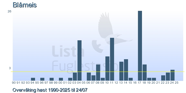 | 1 | Blåmeis | Blue Tit | Cyanistes caeruleus | 1 |