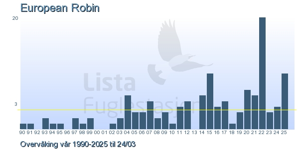 | 3 | Rødstrupe | European Robin | Erithacus rubecula | 1 |