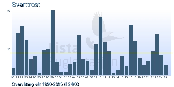 | 2 | Svarttrost | Common Blackbird | Turdus merula | 1 |