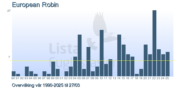 | 3 | Rødstrupe | European Robin | Erithacus rubecula | 5 |