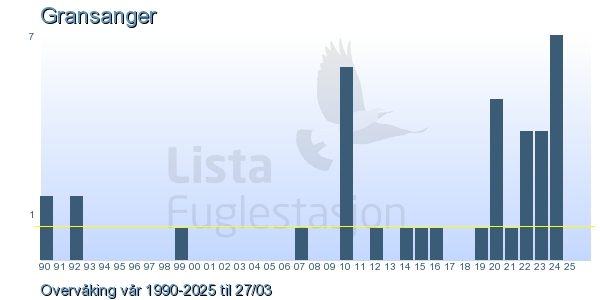 | 1 | Gransanger | Chiffchaff | Phylloscopus collybita | 1 |