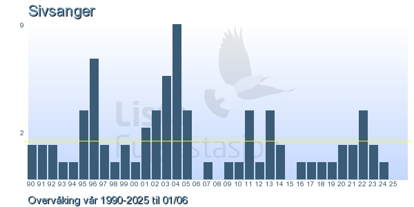 | 5 | Sivsanger | Sedge Warbler | Acrocephalus schoenobaenus | 2 |