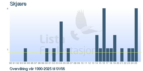 Her ser du resultater av merkeaktiviteten på Lista Fuglestasjon. Du kan velge om du vil ha Dagstall (detaljerte merketall for hver dag), Månedslister (totalsum hver dag for en måned), Sesongdata (status for sesongen), Årslister (artsoversikt for et år) eller Artsliste Lista fuglestasjon (Hele artslisten for merkede fugler på Lista Fuglestasjon).