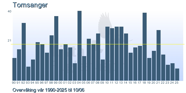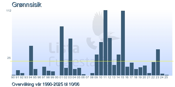 | 6 | Grønnsisik | Eurasian Siskin | Spinus spinus | 2 |