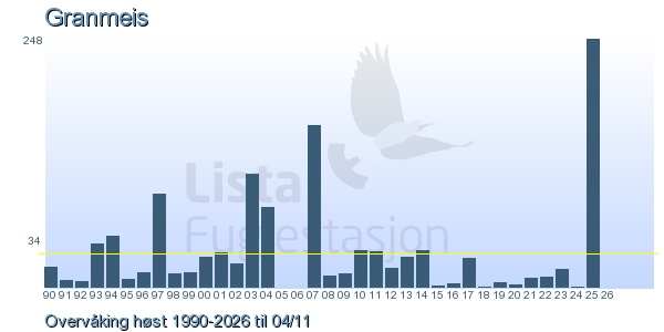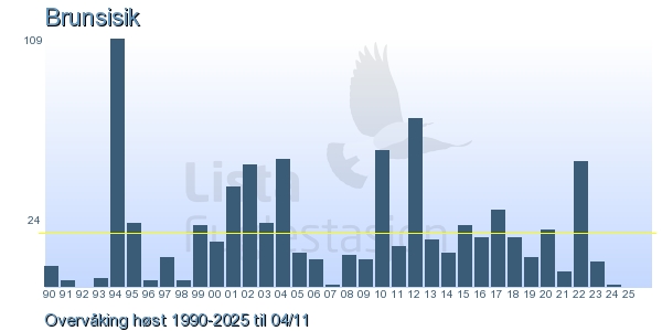 These pages contains the ringing log from Lista Bird Obs. There are several options; Daily log (detailed ringing log for any chosen day), Month log (totals for each day in a month), Season numbers (status for this season), Year list (list of species ringed for any chosen year) or Birdlist Lista Bird Obs. (complete list of species ringed).