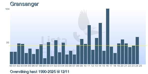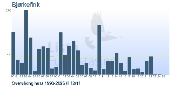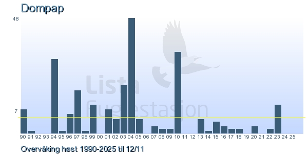 These pages contains the ringing log from Lista Bird Obs. There are several options; Daily log (detailed ringing log for any chosen day), Month log (totals for each day in a month), Season numbers (status for this season), Year list (list of species ringed for any chosen year) or Birdlist Lista Bird Obs. (complete list of species ringed).