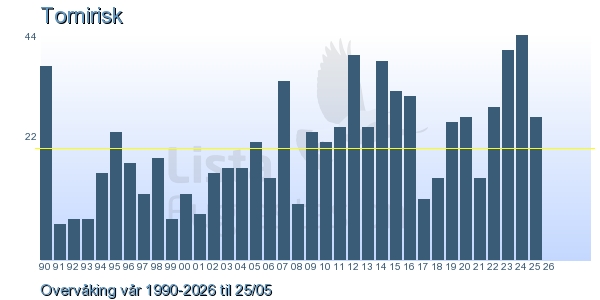 Her ser du resultater av merkeaktiviteten på Lista Fuglestasjon. Du kan velge om du vil ha Dagstall (detaljerte merketall for hver dag), Månedslister (totalsum hver dag for en måned), Sesongdata (status for sesongen), Årslister (artsoversikt for et år) eller Artsliste Lista fuglestasjon (Hele artslisten for merkede fugler på Lista Fuglestasjon).