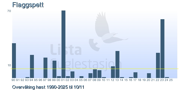 Her ser du resultater av merkeaktiviteten på Lista Fuglestasjon. Du kan velge om du vil ha Dagstall (detaljerte merketall for hver dag), Månedslister (totalsum hver dag for en måned), Sesongdata (status for sesongen), Årslister (artsoversikt for et år) eller Artsliste Lista fuglestasjon (Hele artslisten for merkede fugler på Lista Fuglestasjon).