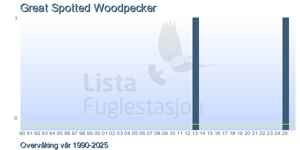 | 2 | Flaggspett | Great Spotted Woodpecker | Dendrocopos major | 1 |