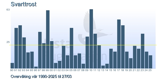 | 1 | Svarttrost | Common Blackbird | Turdus merula | 3 |