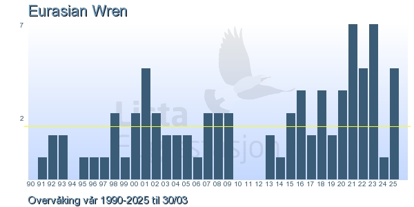 | 1 | Gjerdesmett | Eurasian Wren | Troglodytes troglodytes | 1 |