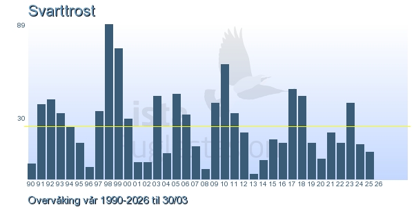 | 3 | Svarttrost | Common Blackbird | Turdus merula | 1 |