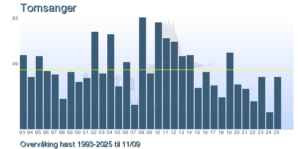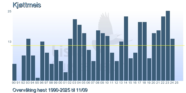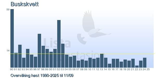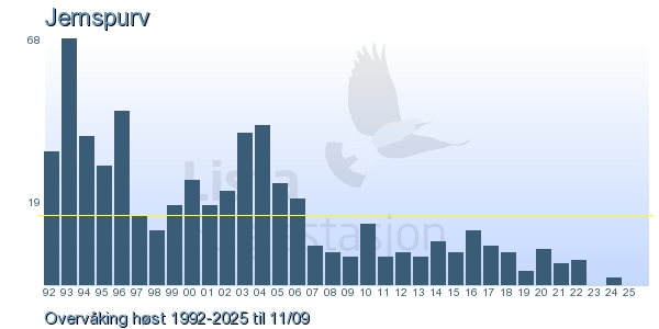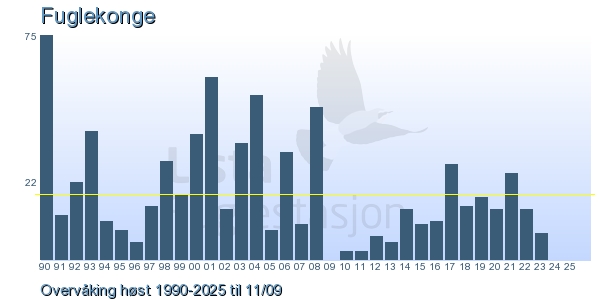 Her ser du resultater av merkeaktiviteten på Lista Fuglestasjon. Du kan velge om du vil ha Dagstall (detaljerte merketall for hver dag), Månedslister (totalsum hver dag for en måned), Sesongdata (status for sesongen), Årslister (artsoversikt for et år) eller Artsliste Lista fuglestasjon (Hele artslisten for merkede fugler på Lista Fuglestasjon).