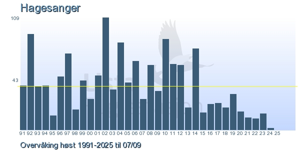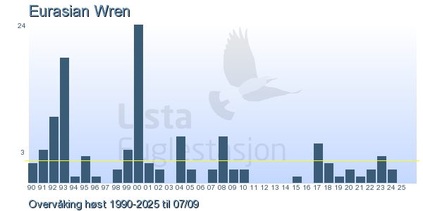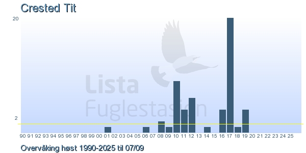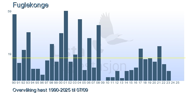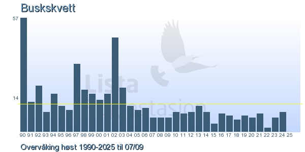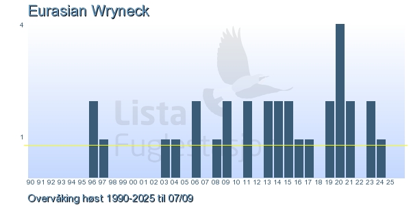 These pages contains the ringing log from Lista Bird Obs. There are several options; Daily log (detailed ringing log for any chosen day), Month log (totals for each day in a month), Season numbers (status for this season), Year list (list of species ringed for any chosen year) or Birdlist Lista Bird Obs. (complete list of species ringed).