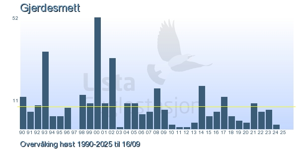 | 8 | Gjerdesmett | Eurasian Wren | Troglodytes troglodytes | 3 |