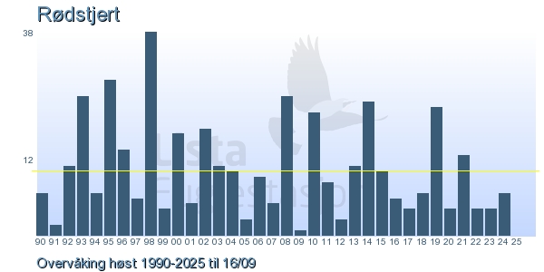 | 10 | Rødstjert | Common Redstart | Phoenicurus phoenicurus | 2 |
