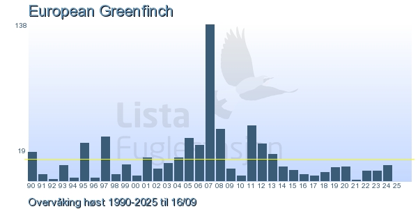 | 13 | Grønnfink | European Greenfinch | Chloris chloris | 1 |
